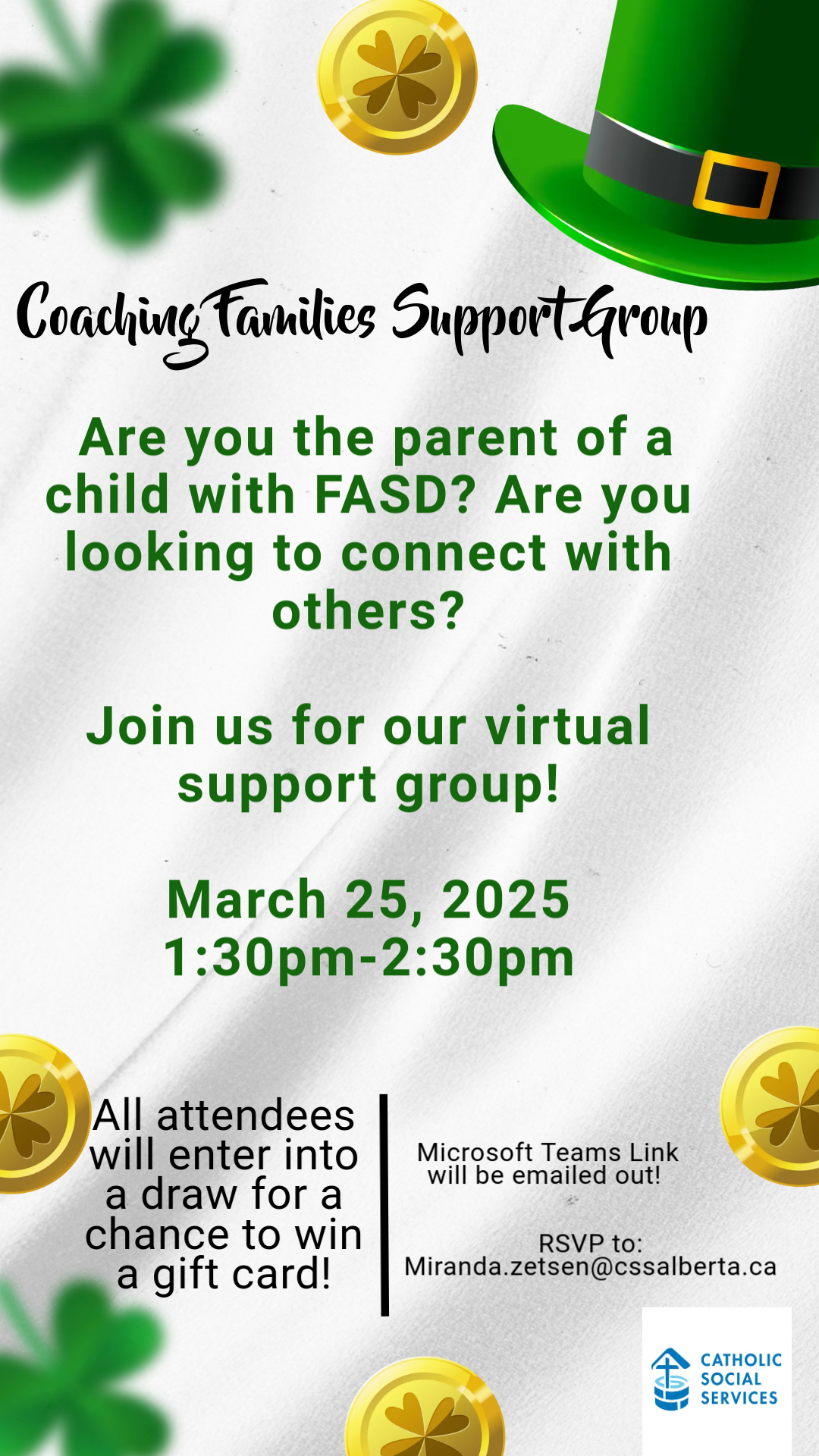 For more information or to register, please reach out to Miranda at Miranda.Zetsen@cssalberta.ca. Let’s support and encourage each other this season!